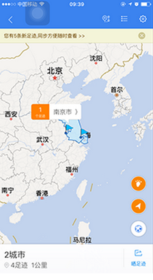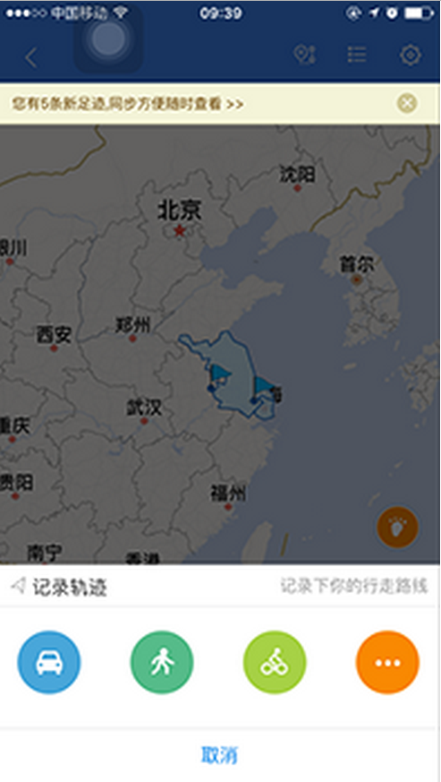 这个时候我们就可以看到自己刚刚出行的轨迹数据,点击右上角“关闭”返回“我的足迹”页面,刚才的出行轨迹已经记录起来了(如下图):