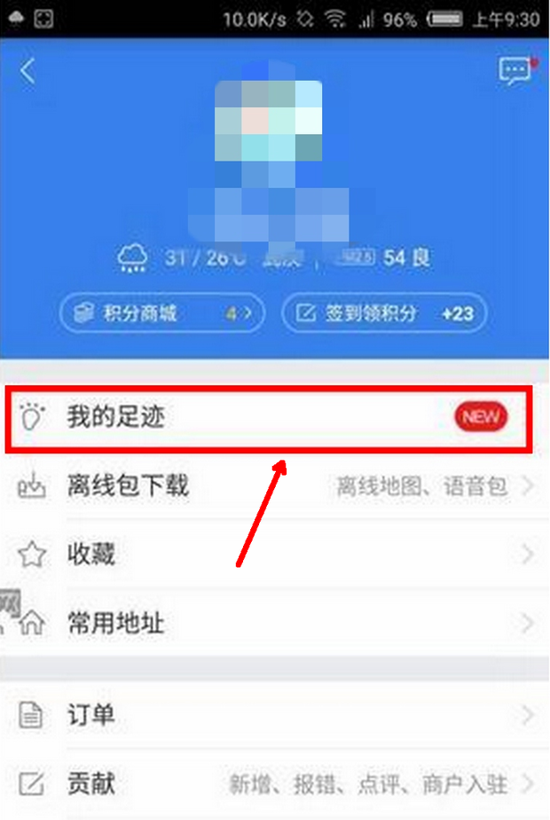 进入“我的”个人中心后,可以看到“我的足迹”并选择点击进入(如下图):