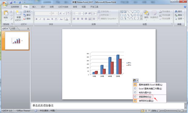第四步:这个时候点击“粘贴项”,在下拉项中选择“保留源格式”点击(如下图):