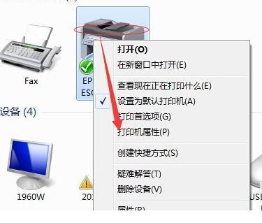 打开你要共享的打印机。右击打印机。打开打印机属性。