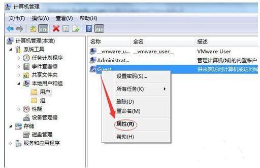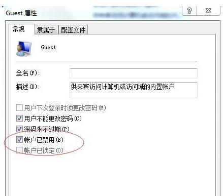 先取消Guest用户的禁用。右击计算机,属性管理,用户和组。右点击Guest。