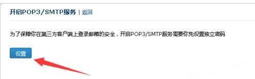 进入开启pop/smtp的界面,然后再点击【设置】。