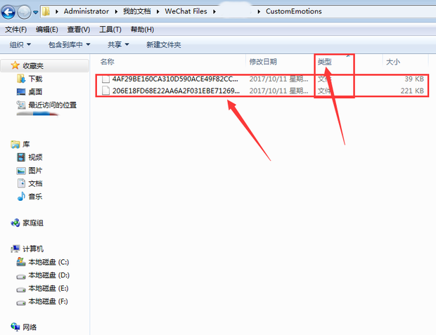 第四步:点击“打开文件夹“后直接出现administrator后,点击我的文档,然后打开微信,找到“CustomEmotions”文件夹打开你就会发现很多”无后缀的文件",而这些文件就是刚刚接收到的动态表情图片,你点击,用IE或图片查看器都可以打开它(如下图):