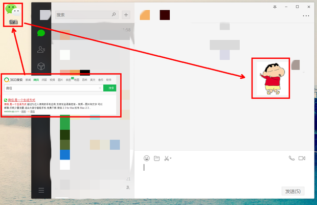 第一步:通过360搜索一下“微信”,点击官网进入下载微信的Windows版本下载安装,然后点击打开有动态表情图片的对话或群(如下图):