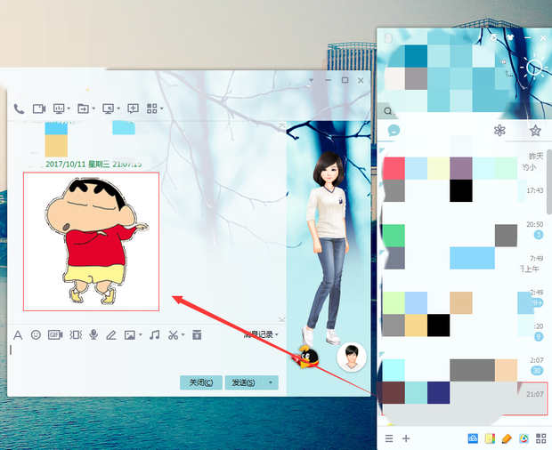 第七步:这个时候你把已经修改好的动态图片复制粘贴到电脑桌面,然后打开QQ,选择一位好友,双击准备要传送的动态图片,打开后点击发送刚从微信保存到当地桌面微信表情图片,这个时候,微信表情发送到QQ好友就成功了,至此微信gif动态表情保存到电脑及微信表情发到QQ(如下图):