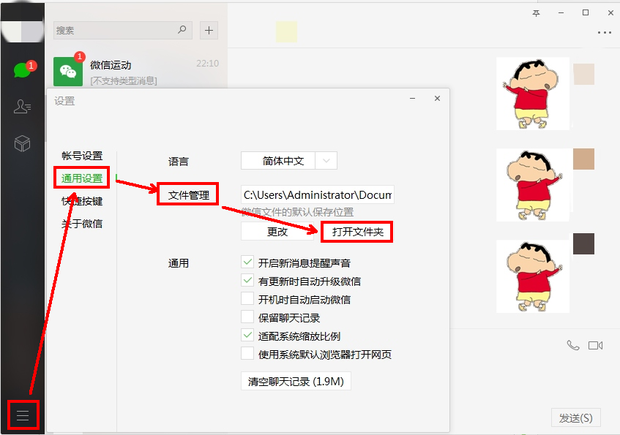 第三步:点击“设置”里面的“通用设置”并点击打开文件管理中的打开“打开文件夹“(如下图):