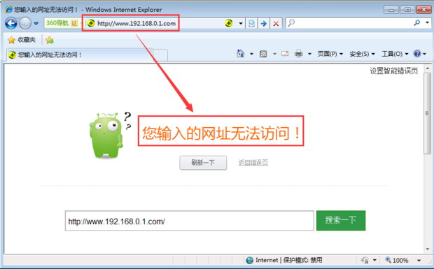 第一步:有的朋友在输入www.192.168.0.1.com时,却呈现出打不开网页的页面,自然谈不上打开路由器了(如下图):