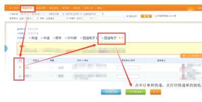 点中批量打印点查询,点中订单和快递,点打印。打印出纸无误再点发货按钮即可。