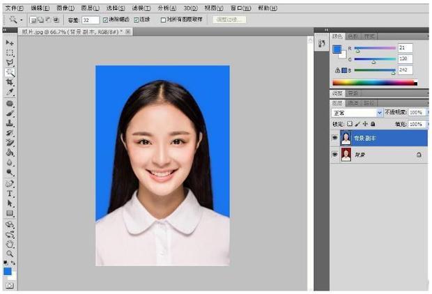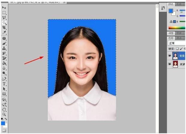 点击照片,按快捷键“Alt+Backspace”,就可以将“红色底”换位“蓝色底”,如图所示。