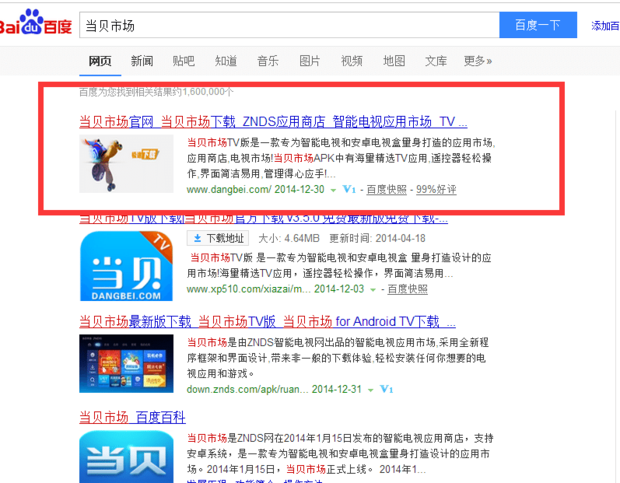 首先在百度搜索或者直接在当贝官网下载当贝市场apk,并拷贝到U盘上。