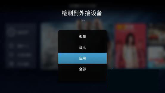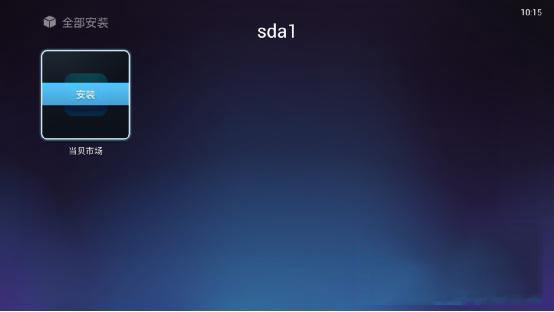 在天猫魔盒M11(青春版)开机运行的状态下,插上U盘之后,自带的多媒体播放文件浏览器会自动弹出来,点击应用就会看到U盘里的当贝市场APK,点击安装即可