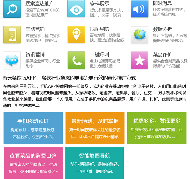 酒香不怕巷子深”的时代已经成为过去式,如今“酒香还怕巷子深”已然成为大家的共识,在移动互联网时代,消费者的消费行为已经发生变化,为此,越来越多的大规模餐饮企业开始利用餐饮App等渠道进行全方位整合营销,从而获取更多价值。作为一个成功的餐饮App,例如郑州冠宇纵恒智云app餐饮版,必须具有传统宣传所不具备的优势: