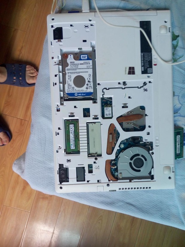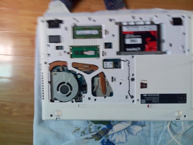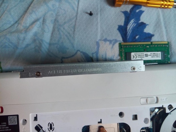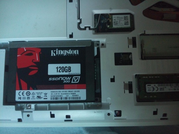 换上固态硬盘SSD,用拆下支架固定SSD,将SSD安装在硬盘原先硬盘位,放置好后固定。