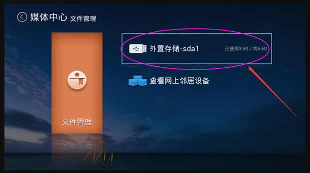 5、打开USB设备(插入U盘,盒子将自动识别U盘)。
