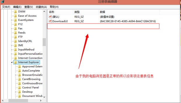 在里面依次打开[HKEY_ CURRENT_USERSoftwareMicrosoftInternet ExplorerDesktopOld WorkAreas],然后在右侧找到OldWorkAreaRects然后点击右键删除,由于我的电脑浏览器是正常的所以没有该注册表信息