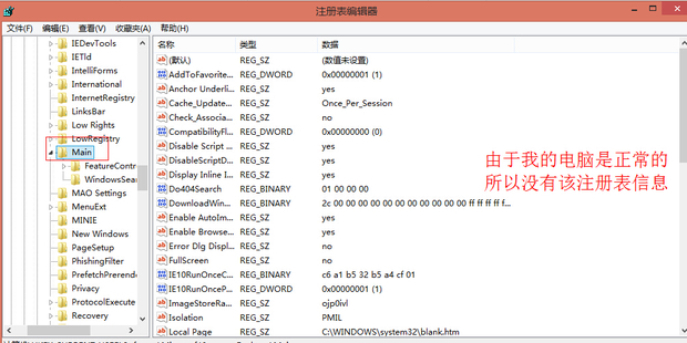 依次打开到[HKEY_ CURRENT_USERSoftwareMicrosoftInternet ExplorerMain],在右侧找到Window_Placement,鼠标点击右键,点击删除。由于我的电脑浏览器是正常的所以没有该注册表信息。