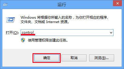 使用组合键(win键+r)打开运行窗口,然后输入control并点击“确定”按钮