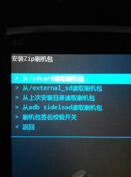 3.>>安装ZIP刷机包,可“从/sdcard读取刷机包”和“从/external_sd读取刷机包”,sdcard为手机内置存储,external_sd为外置SD卡,如下图