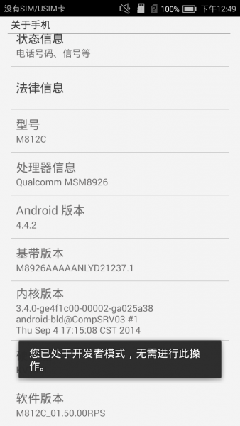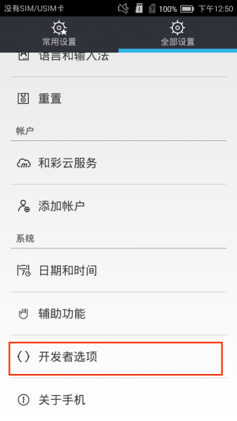 1.>>一部全新的手机需要先打开“开发者选项”,系统默认隐藏了的,打开方法:手机设置 -> 全部设置 -> 关于手机 -> 硬件版本 上面连续按5下即可,返回后可在“关于手机”上面看到“开发者选项”,如下图