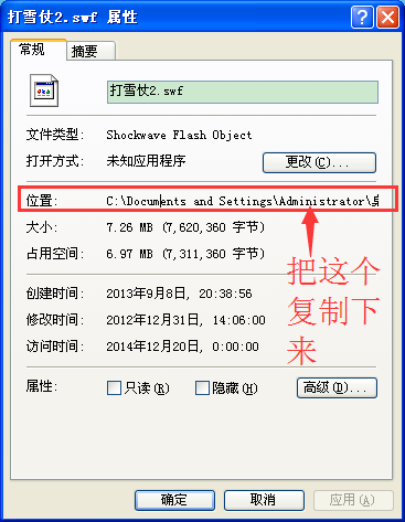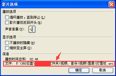 Movie表示视频文件的路径(视频文件必须为swf格式,否则无法播放,关于格式转换请参考:http://xinzhi.wenda.so.com/a/1419036249610063),我们可以鼠标右键视频文件-属性来查看视频文件路径。然后粘贴到movie后面的方框中,然后加上"【视频文件名】.swf"(不要忘了加上反斜杠“”)。