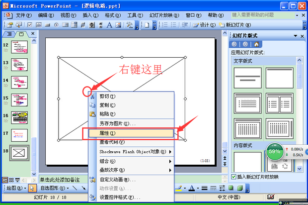 鼠标右键这个矩形,单击”属性“。