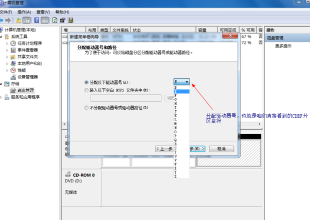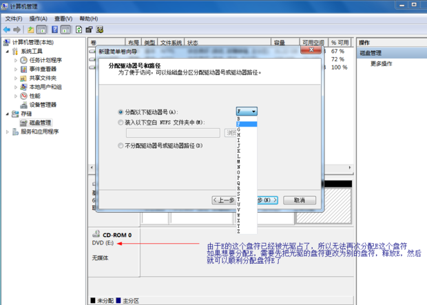当打击遇到无法分配自己需要的盘符时可以参考如图文字所说