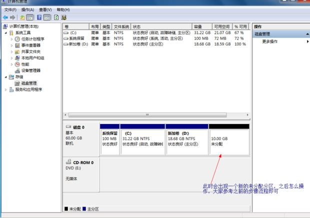 此时会出现一个新的未分配空间,大家继续参照之前的操作流程即可