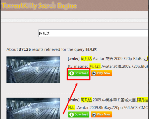 接着输入番号进行搜索,在搜索结果列表中,点击“Download”按钮,即可转向对应下载页面。