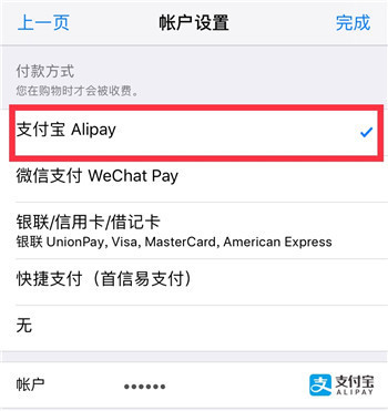 在付款信息里面默认的是支付宝。