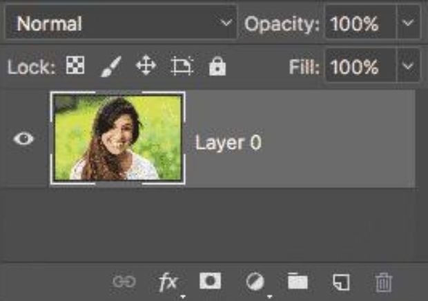 在将图像裁剪成一个圆圈之前,我们首先需要将“背景”层转换为普通层。原因是我们需要通过透明度来包围我们的图像,但Photoshop不允许背景图层是透明的。要将背景层转换为普通层,我们需要做的就是重命名它。在Photoshop CC中,只需单击“图层”面板背景图层右侧的锁定图标即可。在Photoshop CS6或更早版本中,按住键盘上的Alt(Win)/Option(Mac)键,然后双击“背景”图层。Photoshop立即将图层从“背景”重命名为“层0”。就像这样,我们把它转换成一个正常的层,我们很好去: