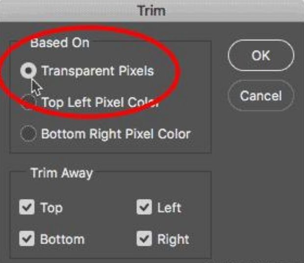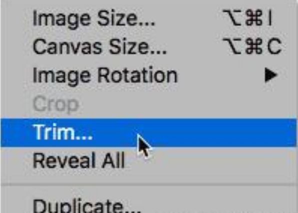修剪透明区域要绕圆形裁剪图像,并移除其周围的所有透明区域,请转到“图像”菜单,然后选择“修剪”: