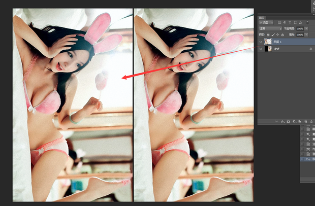 将获得的图层移动到左侧,因为是两倍画布所以正好符合。