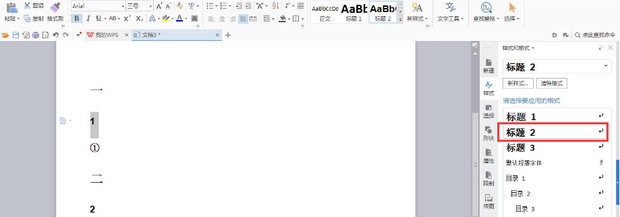 二级标题的文字,点击右边“二级标题样式”。如图