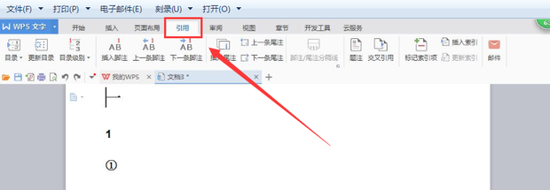 然后,点击“引用”。如图