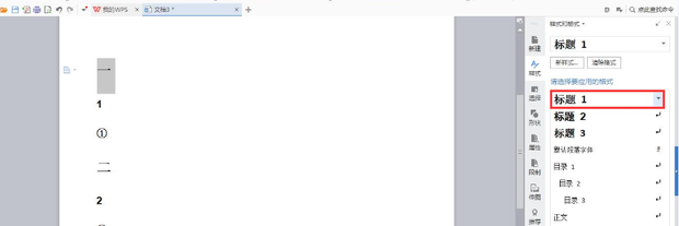 开始大家选中文中的一级标题的文字,点击右边“一级标题样式”。如图