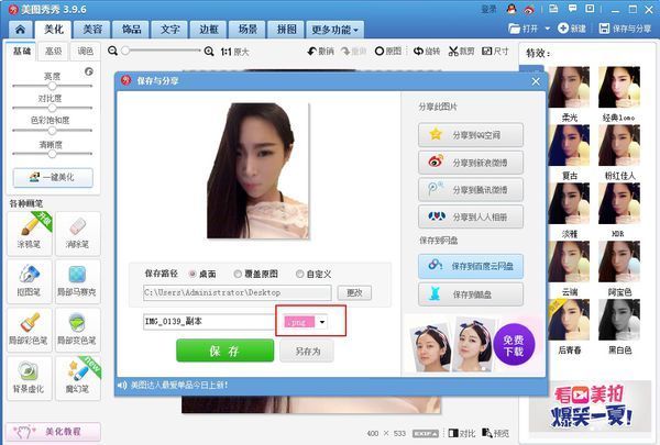 抠图完成后调整图片的位置和大小,并点击“保存与分享”,保存为png格式备用。