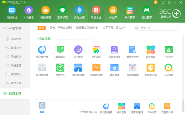 接着分别点击360主页面上方的“功能大全”和电脑管家主页面下方“工具箱”,可以发现,360的功能偏向于系统性的功能,而电脑管家工具箱中的功能则没更多偏向娱乐性。