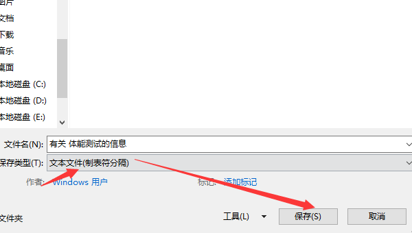 在文件类型中选择“文本文件(制表符分隔)”,点击“保存”。