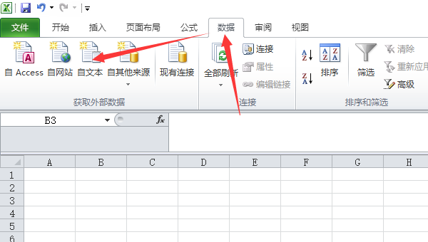 点击“数据”选项卡中的“自文本”按钮。