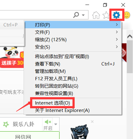 找到右上角的齿轮,点击,选择internet选项。