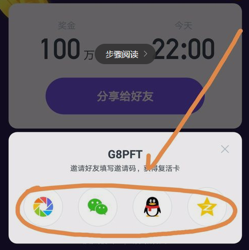 或者你可以分享大家的邀请码到QQ、微信、空间、朋友圈,让别人填写大家的邀请码你就可以获得复活卡