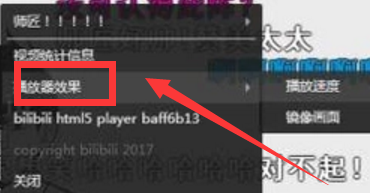 重新开始播放,在屏幕上点击右键,选择“播放器效果”,如下图所示。