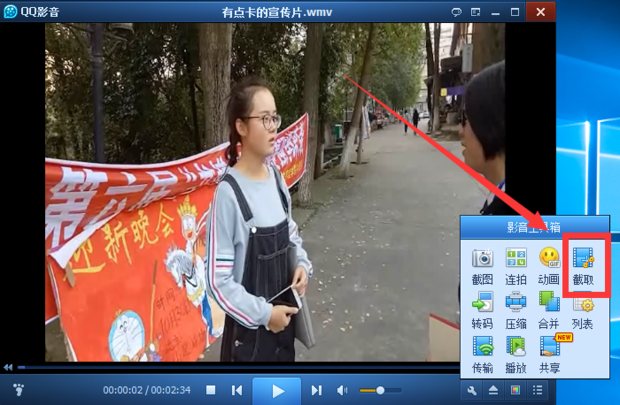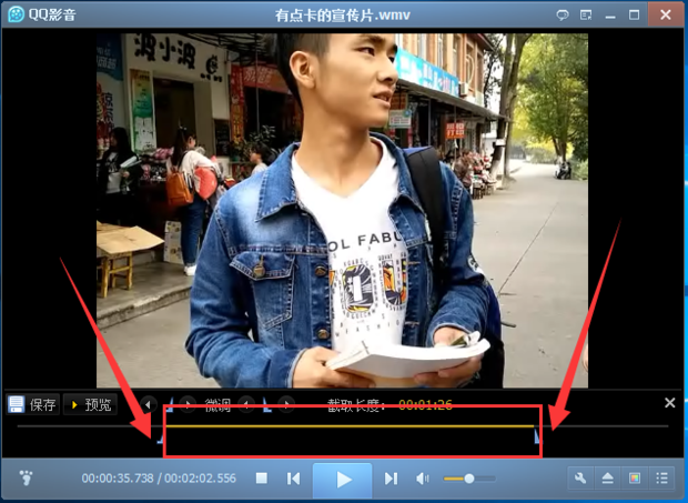 拉动视频左右两边的小标志,选择需要截取的片段,