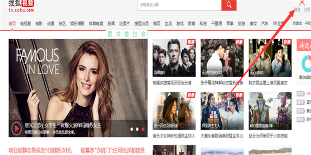 进入“搜狐视频”主页,点击“登陆/注册”。