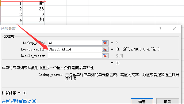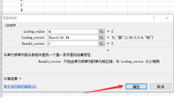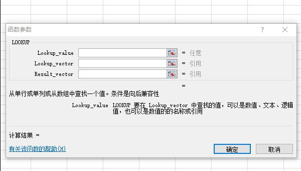 打开LOOKUP函数参数输入的对话框。