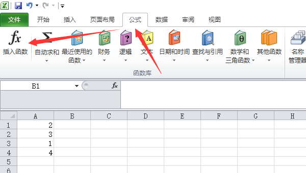 在公式选项卡中找到插入函数栏,单击。