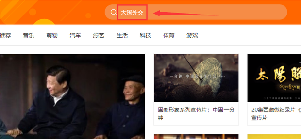 进入土豆视频网站,在搜索框内输入想要下载的视频名称,这里以“大国外交”为例,按键盘回车键进行搜索