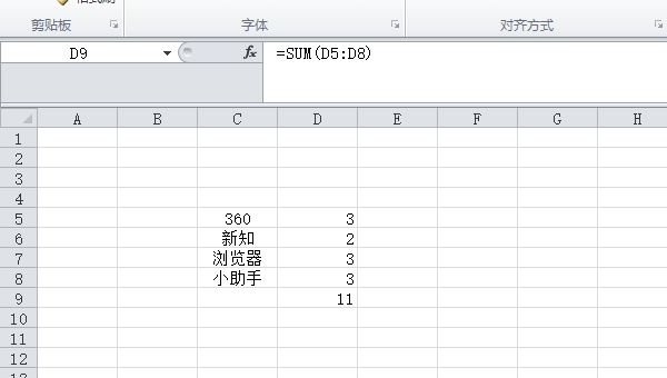 点击回车键,完成excel统计数字。