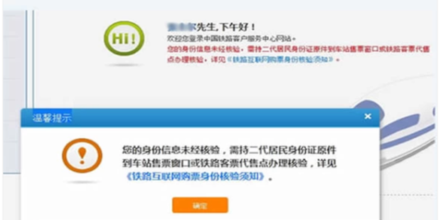 ①“已通过”:指注册用户、常用联系人(乘车人)的身份信息已经通过核验,其中姓名、证件类型和证件号码三项身份信息不可修改。