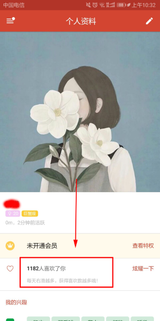 如图就可以看到有多少人喜欢你,可是也不能具体知道谁喜欢你。原来在用户选择喜欢或不喜欢照片时,探探自动记录用户兴趣的数据,如果只是一方对另一方有好感,探探就替他们保守这个秘密;